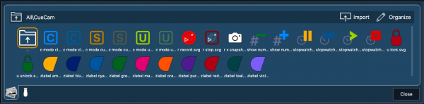 We've made a set of simple SVG icons designed to be used with CueCam, you can download them here.