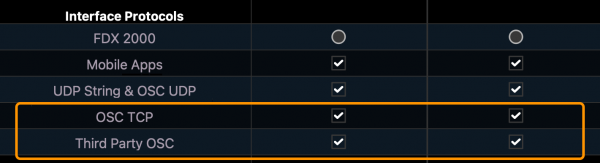 Within Settings > Device > Network enable both Third Party OSC and OSC TCP on any network interfaces that you want to use CueCam on;