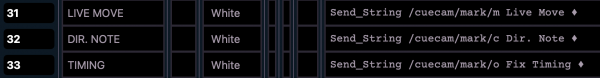 These can be specified in the OSC Commands as either the full colour name (e.g. /cuecam/marker/magenta or the first letter of the colour /cuecam/marker/m)