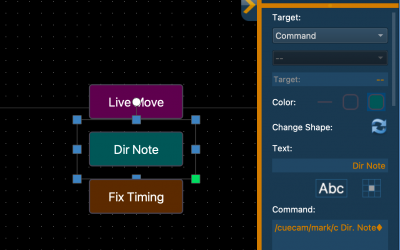You can fire Macros from a Magic Sheet, you can also directly set a Command target on a Magic Sheet button with the text in the command /cuecam/mark/c Dir. Note♦ (where ♦ is the Enter command)