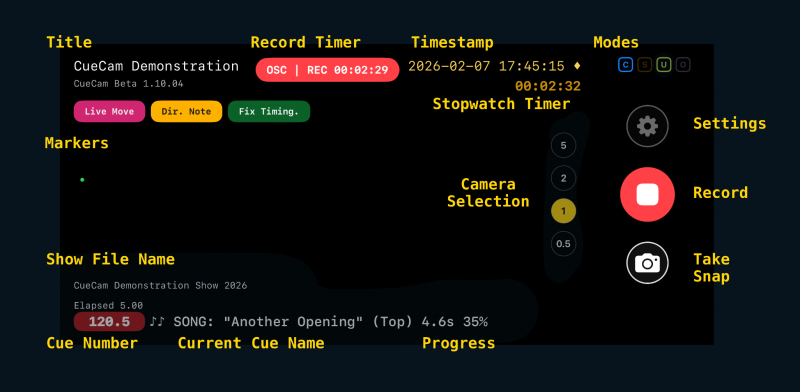 Markers triggered by OSC or on the device will appear in a row here. They are displayed for a period of *five seconds* from when they were added to the video and are easy to identify when scrubbing through footage later. At most *five* will be displayed at a time.